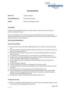 Job Description for Teacher of Science